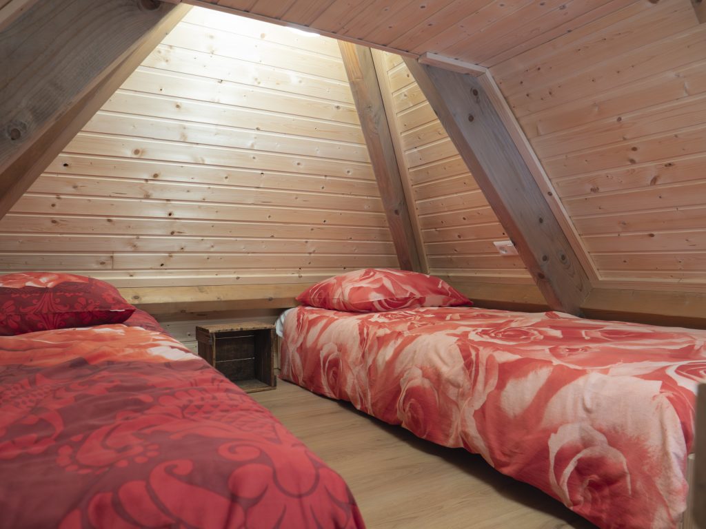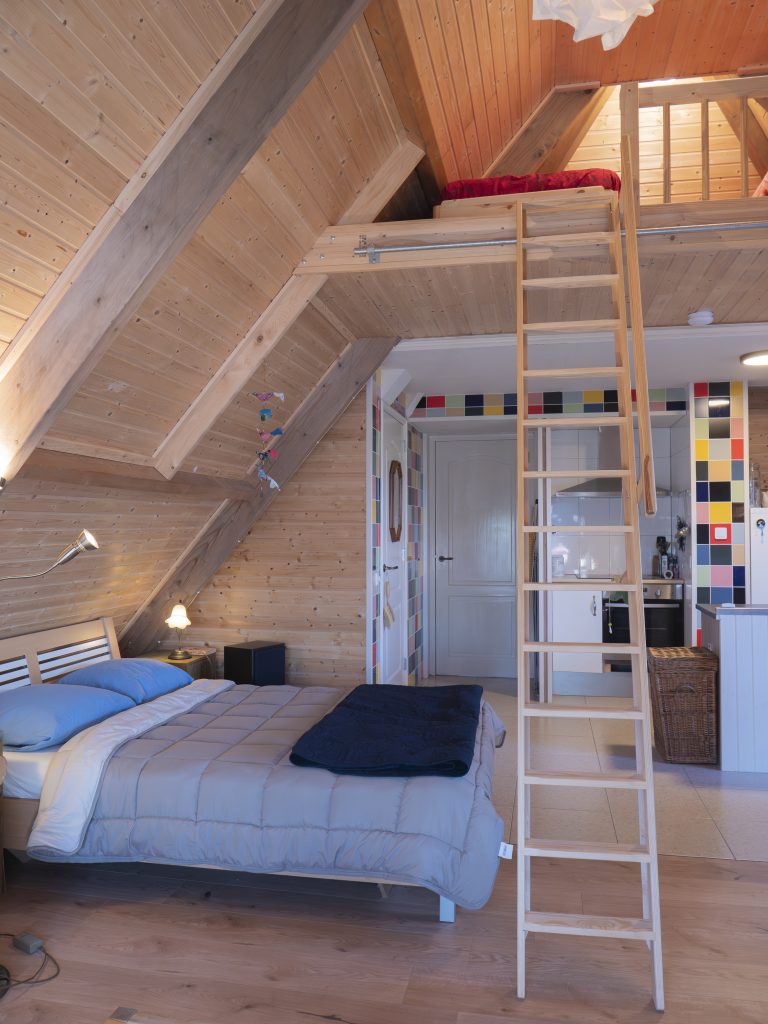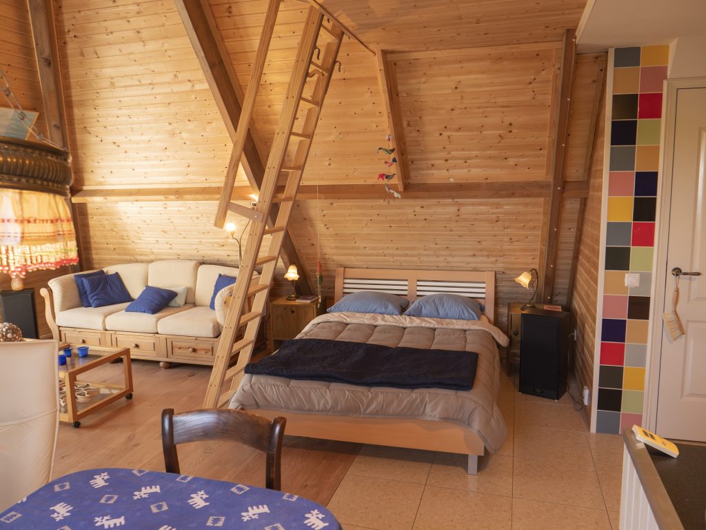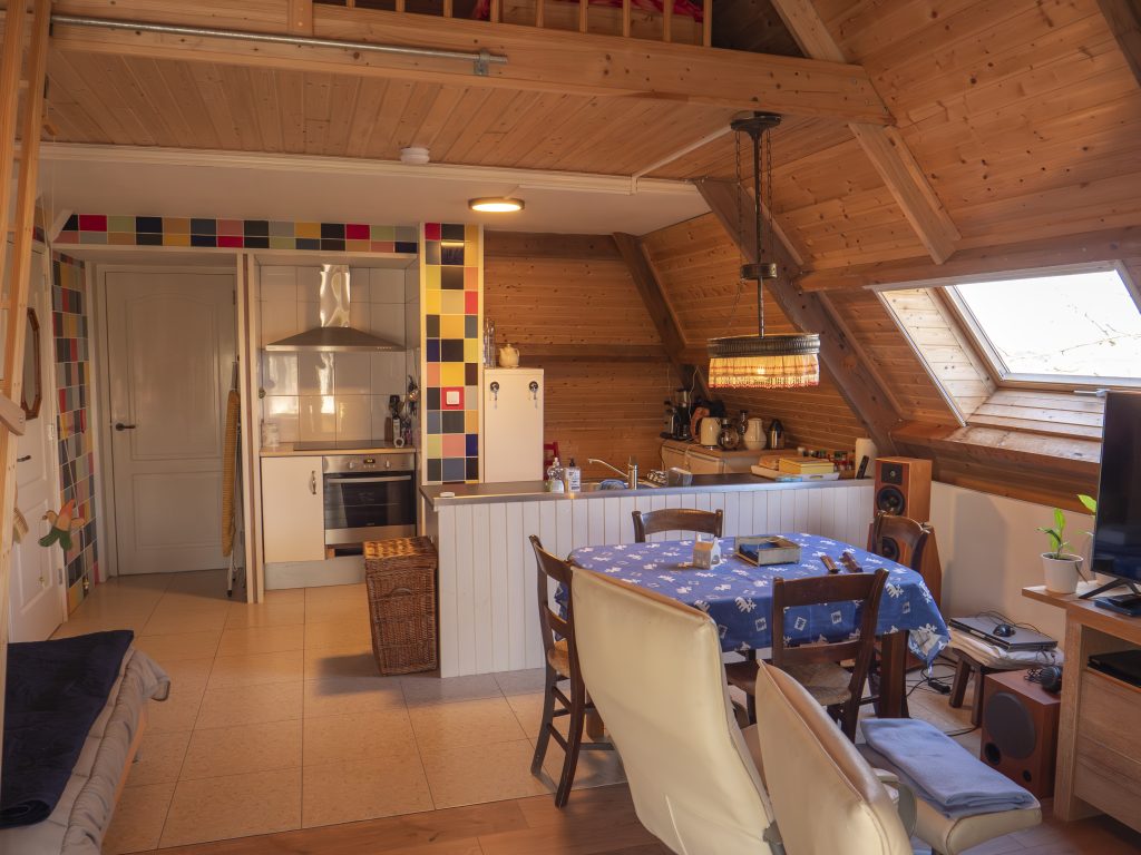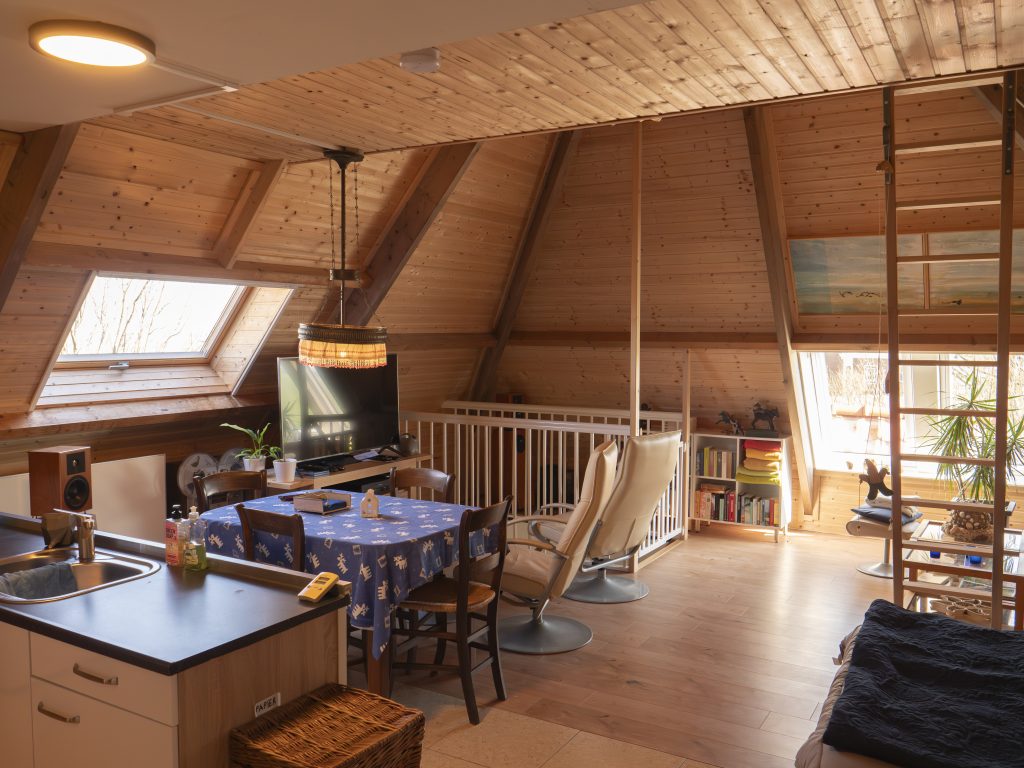 Es ist für zwei bis maximal vier Personen geeignet. Auf dem Dachboden, der über eine sogenannte Müllertreppe erreichbar ist, befinden sich zwei extra Betten.